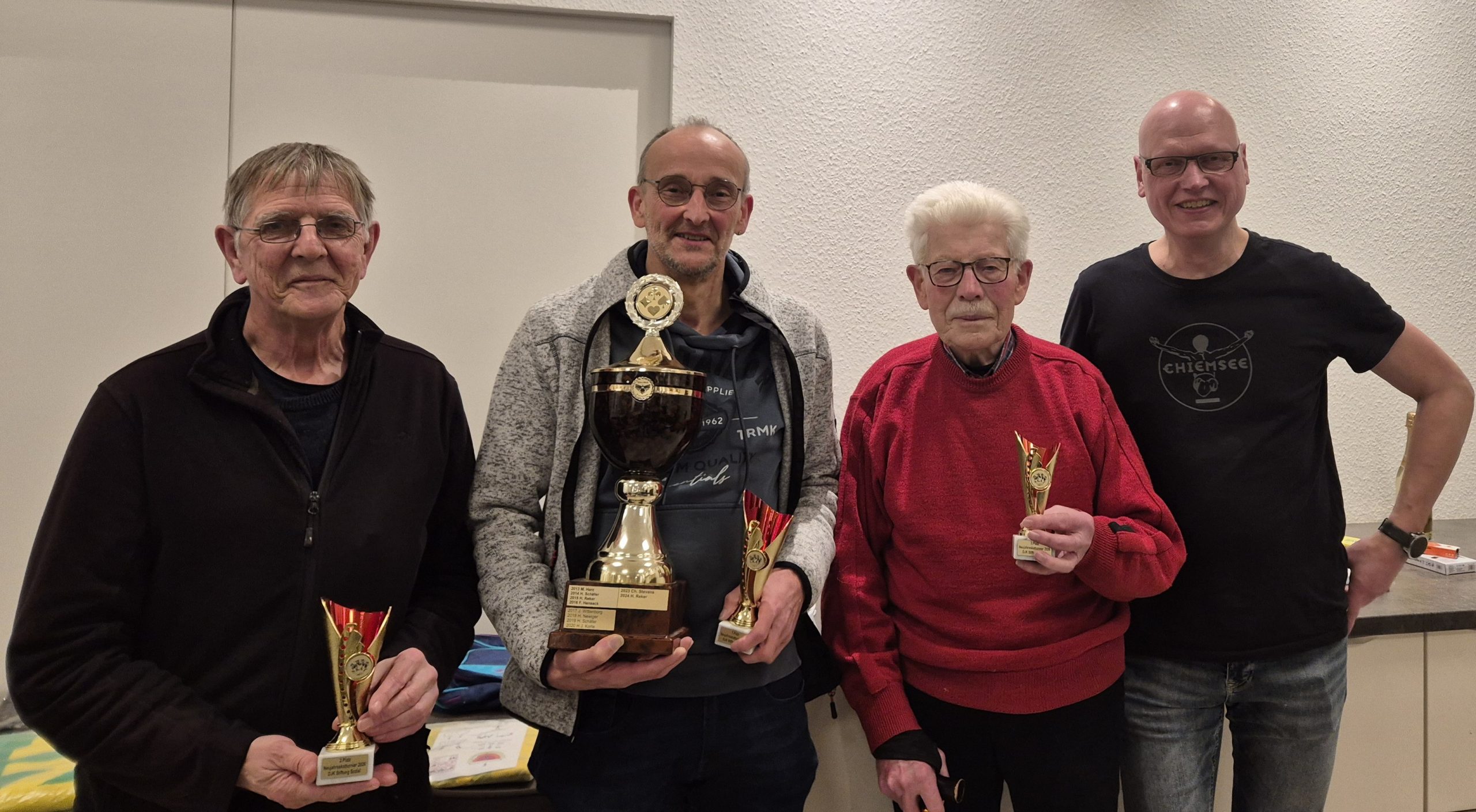 28 reizbegeisterte Teilnehmer nahmen trotz der widrigen Wetterprognose am Neujahrsskaturnier der DJK Avenwedde in deren Sportheim teil. Nach drei spannenden Spielrunden und einigen überraschenden verlorenen, aber auch gewonnenen Spielen stand der „Meister der Skatkunst“ fest. Friedhelm Heidenhöfer sicherte sich mit über 100 Punkten Vorsprung den Siegerpokal. Auf Platz 2 folgte Reinhard Weidmann gefolgt von Kurt Hermjohannknecht auf Platz 3.